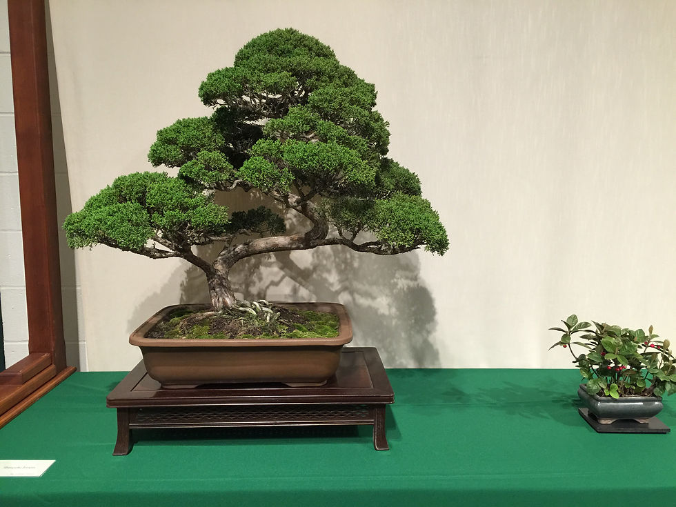 John Naka is known for his love for large bonsai display. This is truely evident by the extra large bonsai backdrop and the large trees it shows. Each tree is well manicured and excuted for the this prized show at the Huntington Library this past weekend.